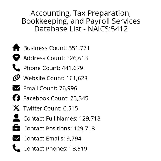 Accounting, Tax Preparation, Bookkeeping, and Payroll Services Database List - NAICS:5412