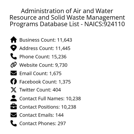 Administration of Air and Water Resource and Solid Waste Management Programs Database List - NAICS:924110