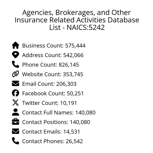 Agencies, Brokerages, and Other Insurance Related Activities Database List - NAICS:5242