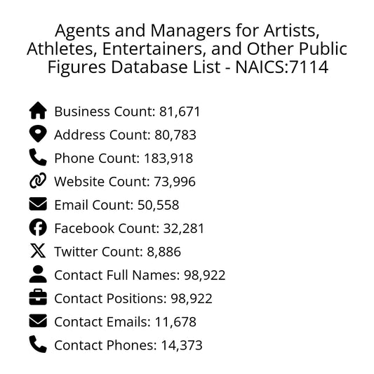 Agents and Managers for Artists, Athletes, Entertainers, and Other Public Figures Database List - NAICS:7114