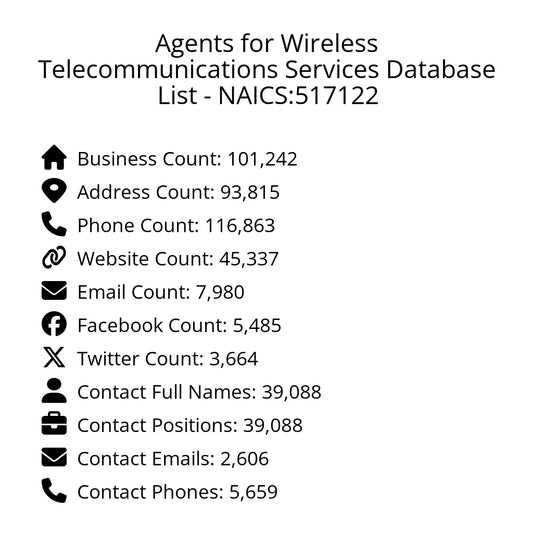 Agents for Wireless Telecommunications Services Database List - NAICS:517122