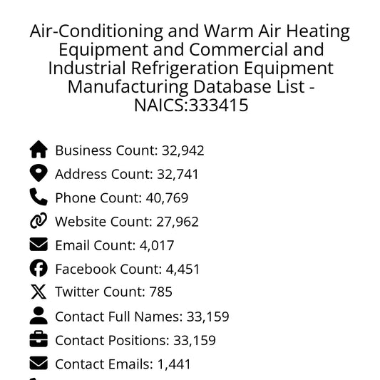 Air-Conditioning and Warm Air Heating Equipment and Commercial and Industrial Refrigeration Equipment Manufacturing Database List - NAICS:333415