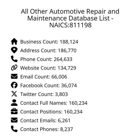 All Other Automotive Repair and Maintenance Database List - NAICS:811198