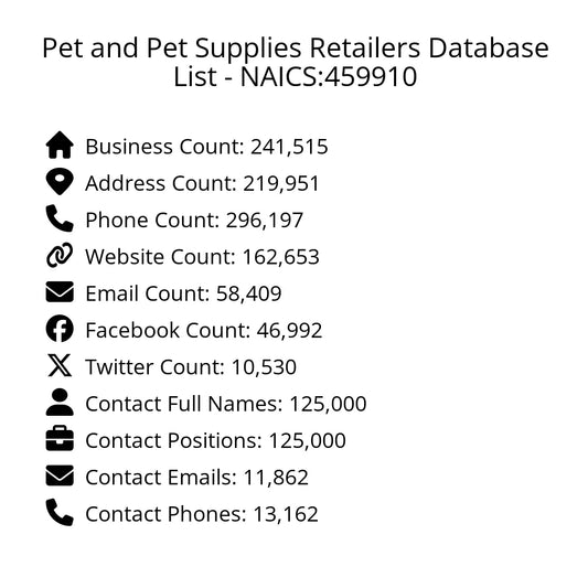 Pet and Pet Supplies Retailers Database List - NAICS:459910