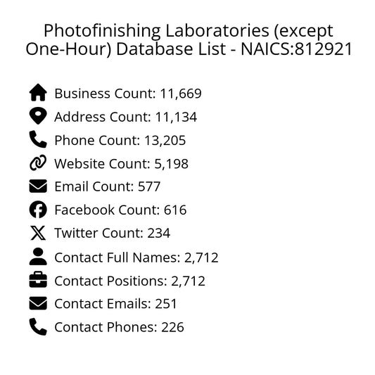 Photofinishing Laboratories (except One-Hour) Database List - NAICS:812921