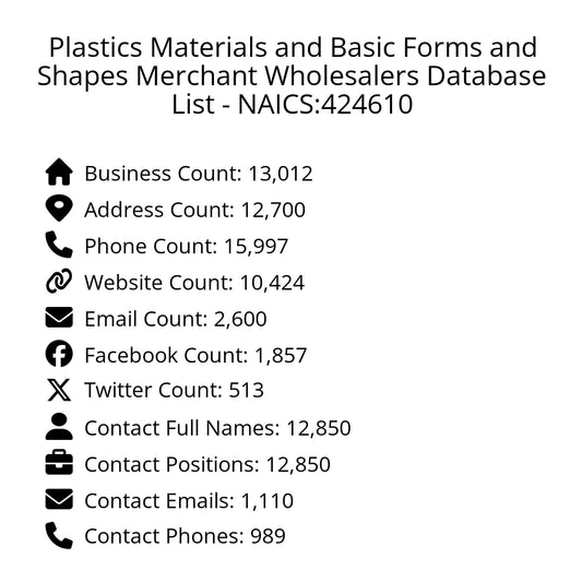 Plastics Materials and Basic Forms and Shapes Merchant Wholesalers Database List - NAICS:424610
