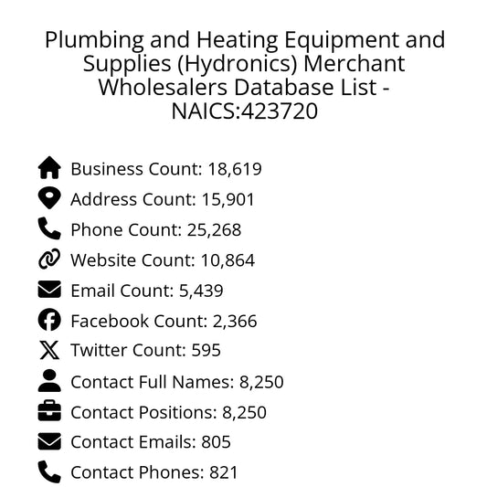 Plumbing and Heating Equipment and Supplies (Hydronics) Merchant Wholesalers Database List - NAICS:423720
