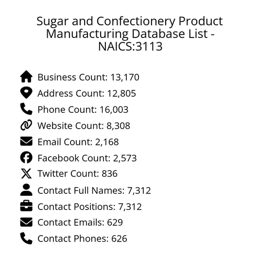 Sugar and Confectionery Product Manufacturing Database List - NAICS:3113