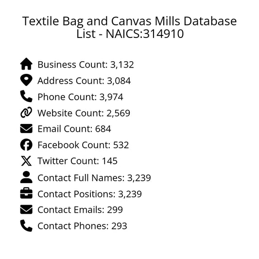 Textile Bag and Canvas Mills Database List - NAICS:314910
