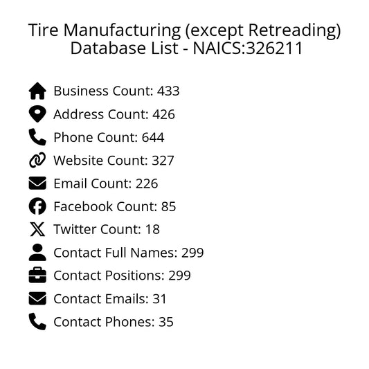 Tire Manufacturing (except Retreading) Database List - NAICS:326211