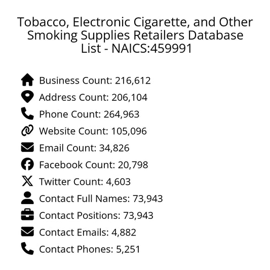 Tobacco, Electronic Cigarette, and Other Smoking Supplies Retailers Database List - NAICS:459991