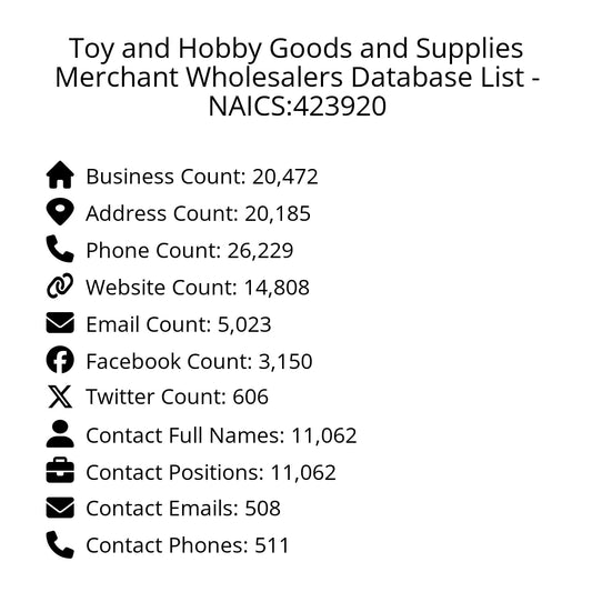 Toy and Hobby Goods and Supplies Merchant Wholesalers Database List - NAICS:423920
