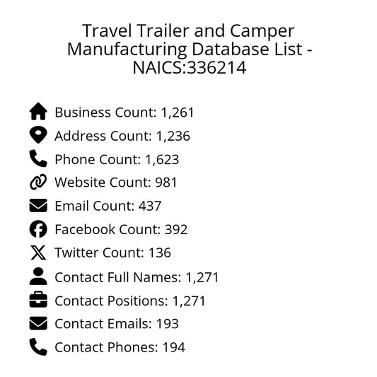 Travel Trailer and Camper Manufacturing Database List - NAICS:336214