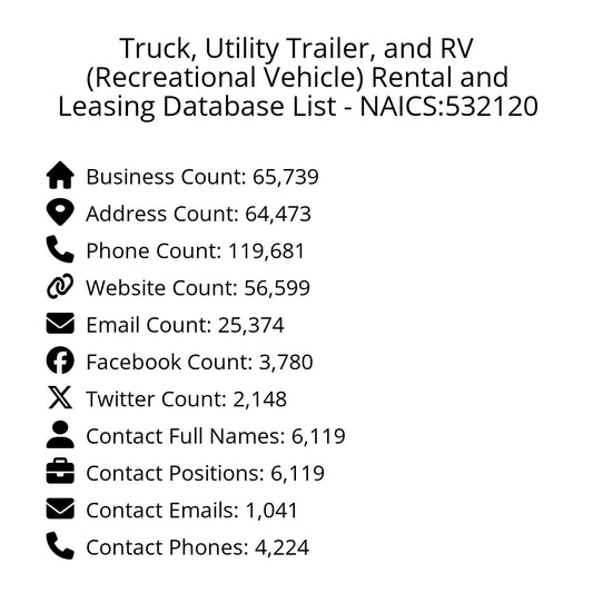 Truck, Utility Trailer, and RV (Recreational Vehicle) Rental and Leasing Database List - NAICS:532120