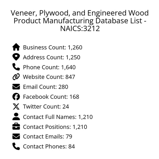 Veneer, Plywood, and Engineered Wood Product Manufacturing Database List - NAICS:3212