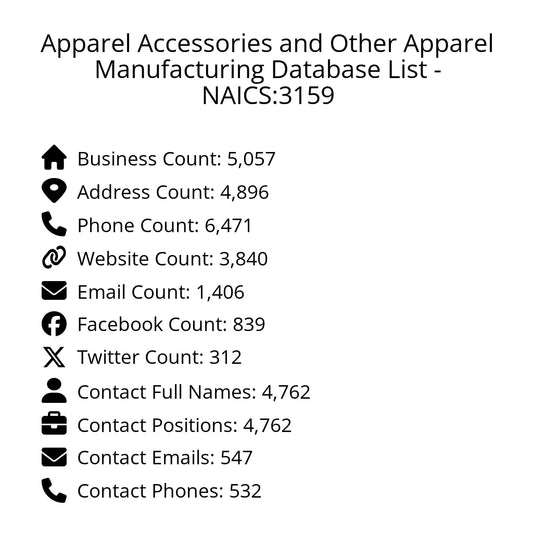 Apparel Accessories and Other Apparel Manufacturing Database List - NAICS:3159