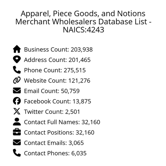 Apparel, Piece Goods, and Notions Merchant Wholesalers Database List - NAICS:4243
