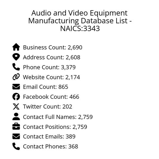Audio and Video Equipment Manufacturing Database List - NAICS:3343