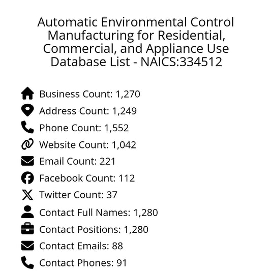 Automatic Environmental Control Manufacturing for Residential, Commercial, and Appliance Use Database List - NAICS:334512