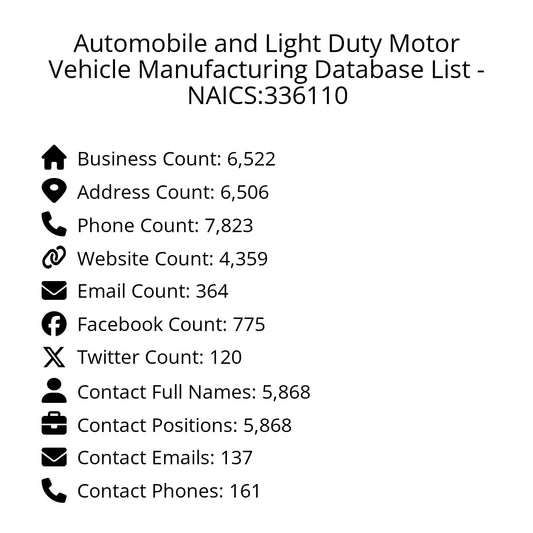 Automobile and Light Duty Motor Vehicle Manufacturing Database List - NAICS:336110