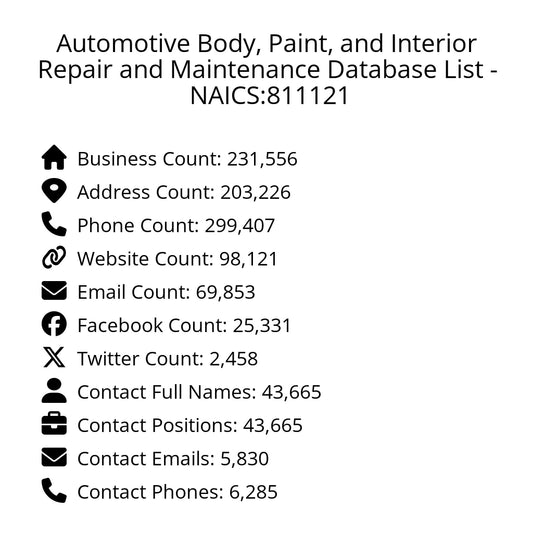 Automotive Body, Paint, and Interior Repair and Maintenance Database List - NAICS:811121