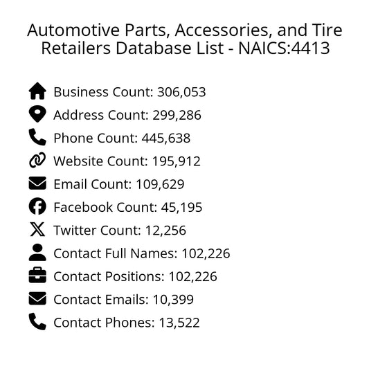 Automotive Parts, Accessories, and Tire Retailers Database List - NAICS:4413