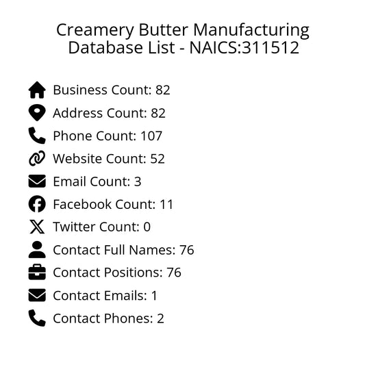 Creamery Butter Manufacturing Database List - NAICS:311512
