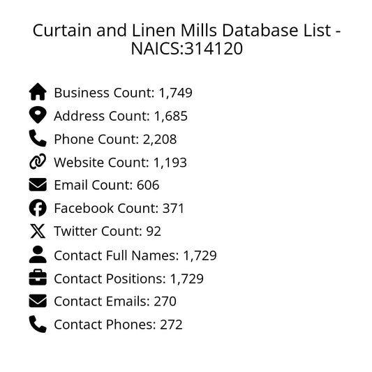 Curtain and Linen Mills Database List - NAICS:314120