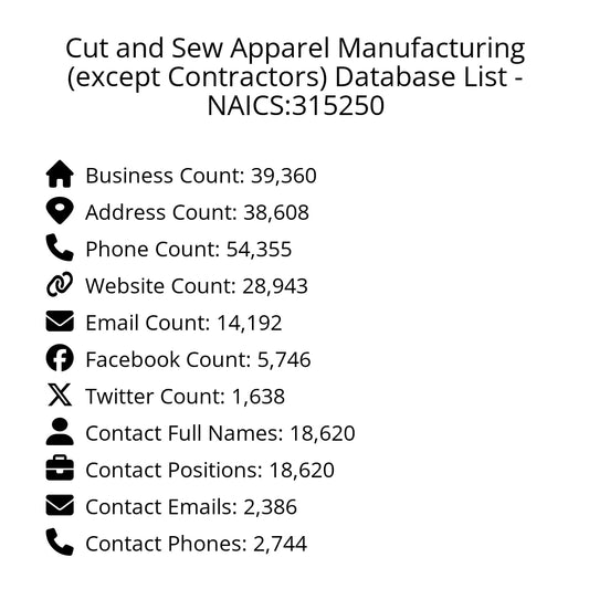 Cut and Sew Apparel Contractors Database List - NAICS:315210