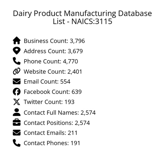 Dairy Product Manufacturing Database List - NAICS:3115