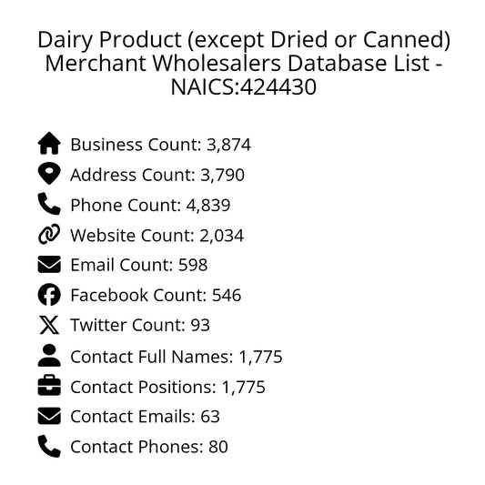 Dairy Product (except Dried or Canned) Merchant Wholesalers Database List - NAICS:424430