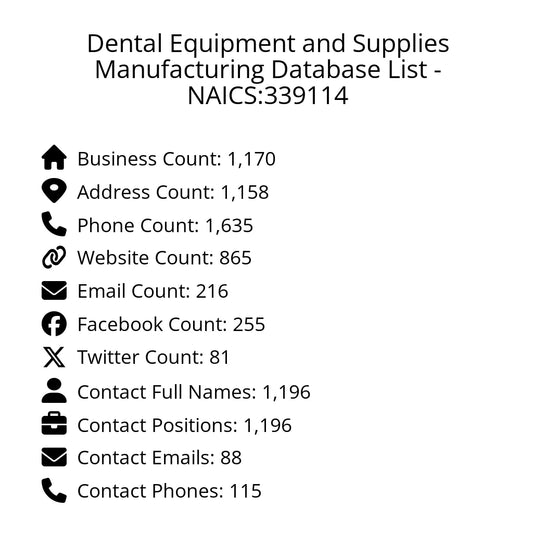 Dental Equipment and Supplies Manufacturing Database List - NAICS:339114