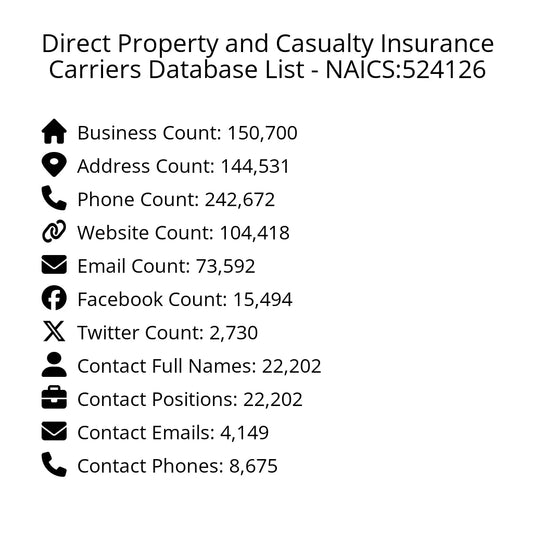 Direct Property and Casualty Insurance Carriers Database List - NAICS:524126