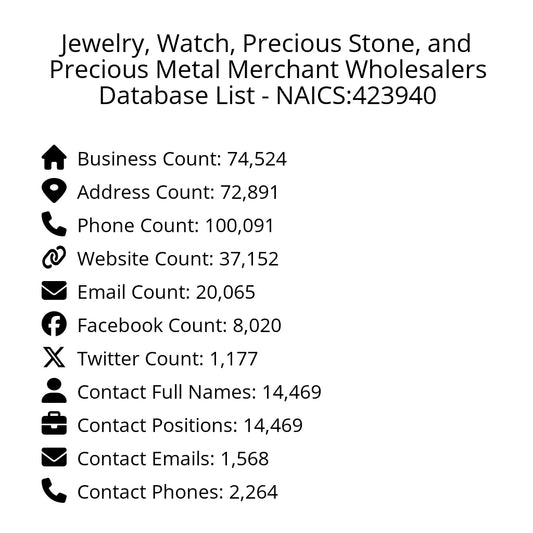 Jewelry, Watch, Precious Stone, and Precious Metal Merchant Wholesalers Database List - NAICS:423940