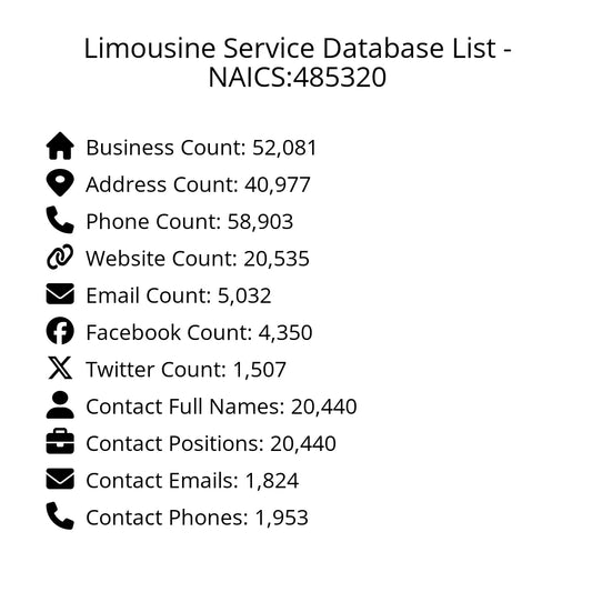 Limousine Service Database List - NAICS:485320