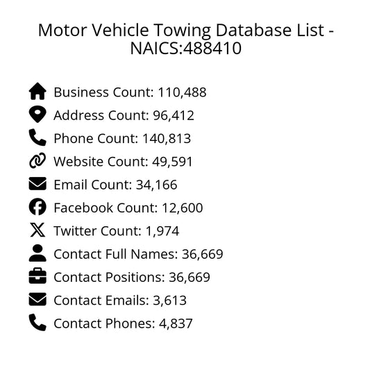 Motor Vehicle Towing Database List - NAICS:488410