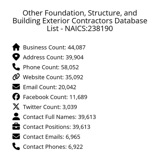 Other Foundation, Structure, and Building Exterior Contractors Database List - NAICS:238190