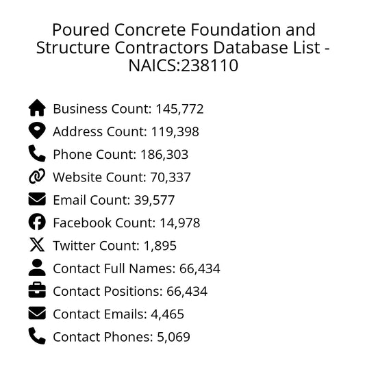 Poured Concrete Foundation and Structure Contractors Database List - NAICS:238110