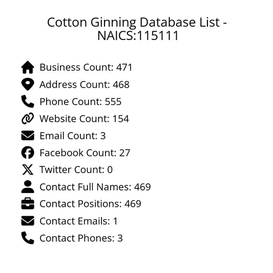 Cotton Ginning Database List - NAICS:115111