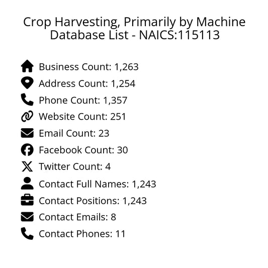 Crop Harvesting, Primarily by Machine Database List - NAICS:115113