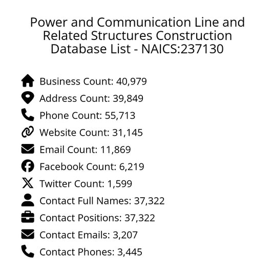 Power and Communication Line and Related Structures Construction Database List - NAICS:237130