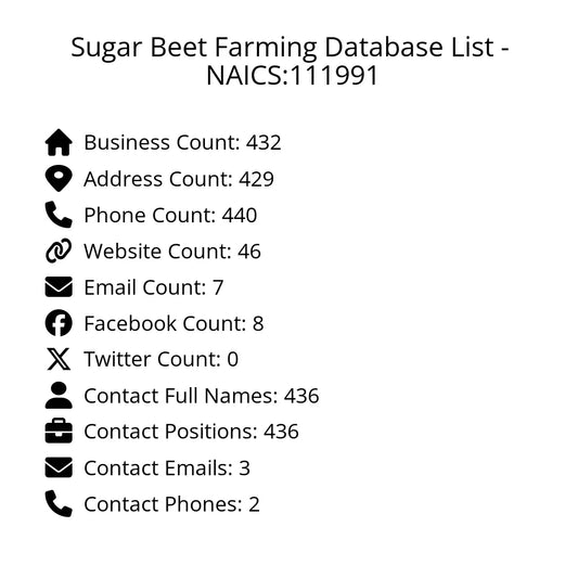 Sugar Beet Farming Database List - NAICS:111991