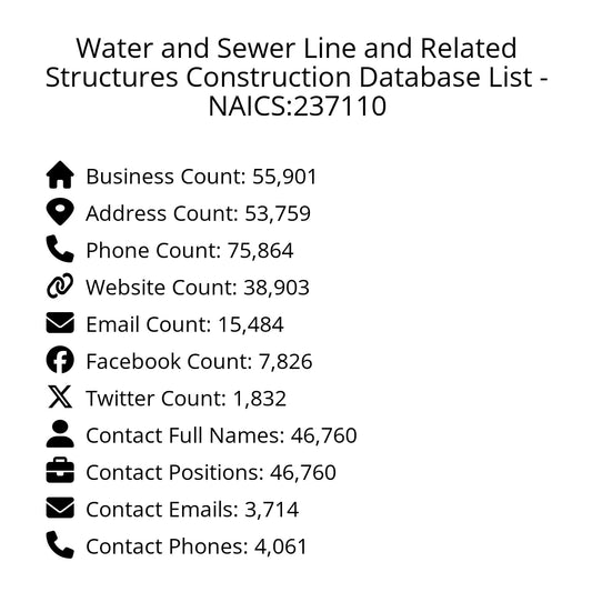 Water and Sewer Line and Related Structures Construction Database List - NAICS:237110