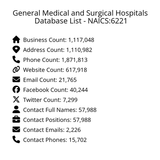 General Medical and Surgical Hospitals Database List - NAICS:6221