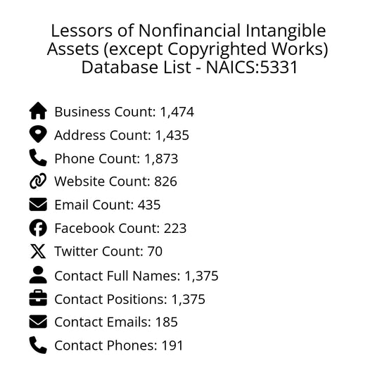 Lessors of Nonfinancial Intangible Assets (except Copyrighted Works) Database List - NAICS:5331