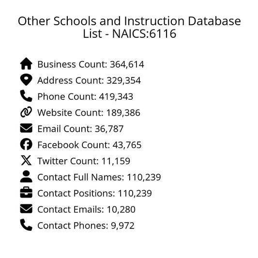Other Schools and Instruction Database List - NAICS:6116