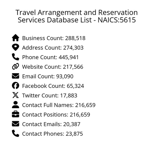 Travel Arrangement and Reservation Services Database List - NAICS:5615